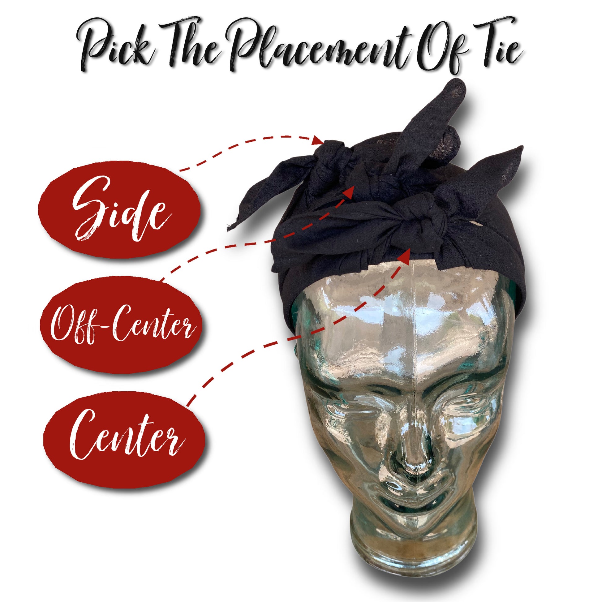 - Headband pictured above is 1-1/2 Inches at the widest point. Other widths to choose from at check-out. Tie is placed OFF-CENTER.