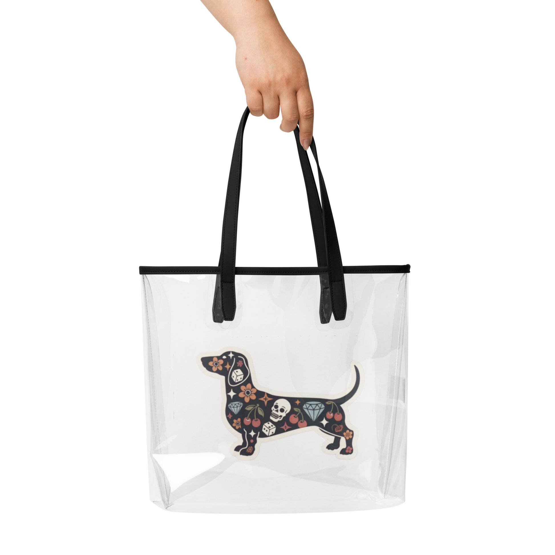 This is a one of a kind design and part of my new Rebel Doxie Collection of items. Made by me, for all the tattoo lovers and Dachshund obsessed. This clear bag is perfect for festivals, beach days, heading to the market or your next sports even.