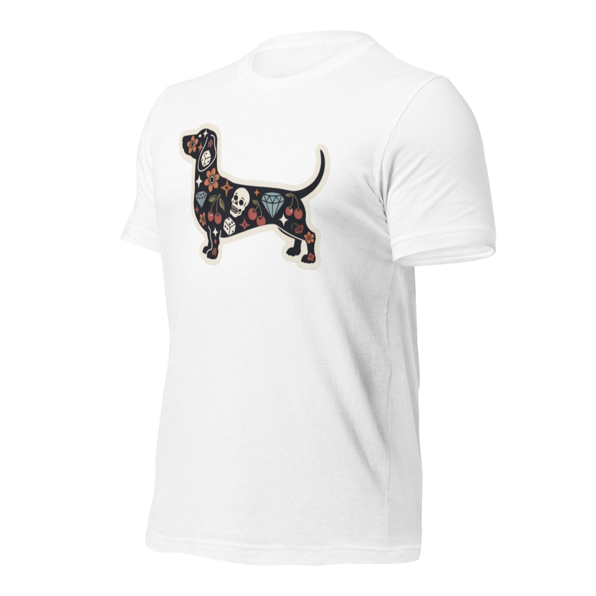 This T-shirt features your favorite tattooed weenie dog. It feels soft and lightweight, with the right amount of stretch. It's comfortable and flattering for all.